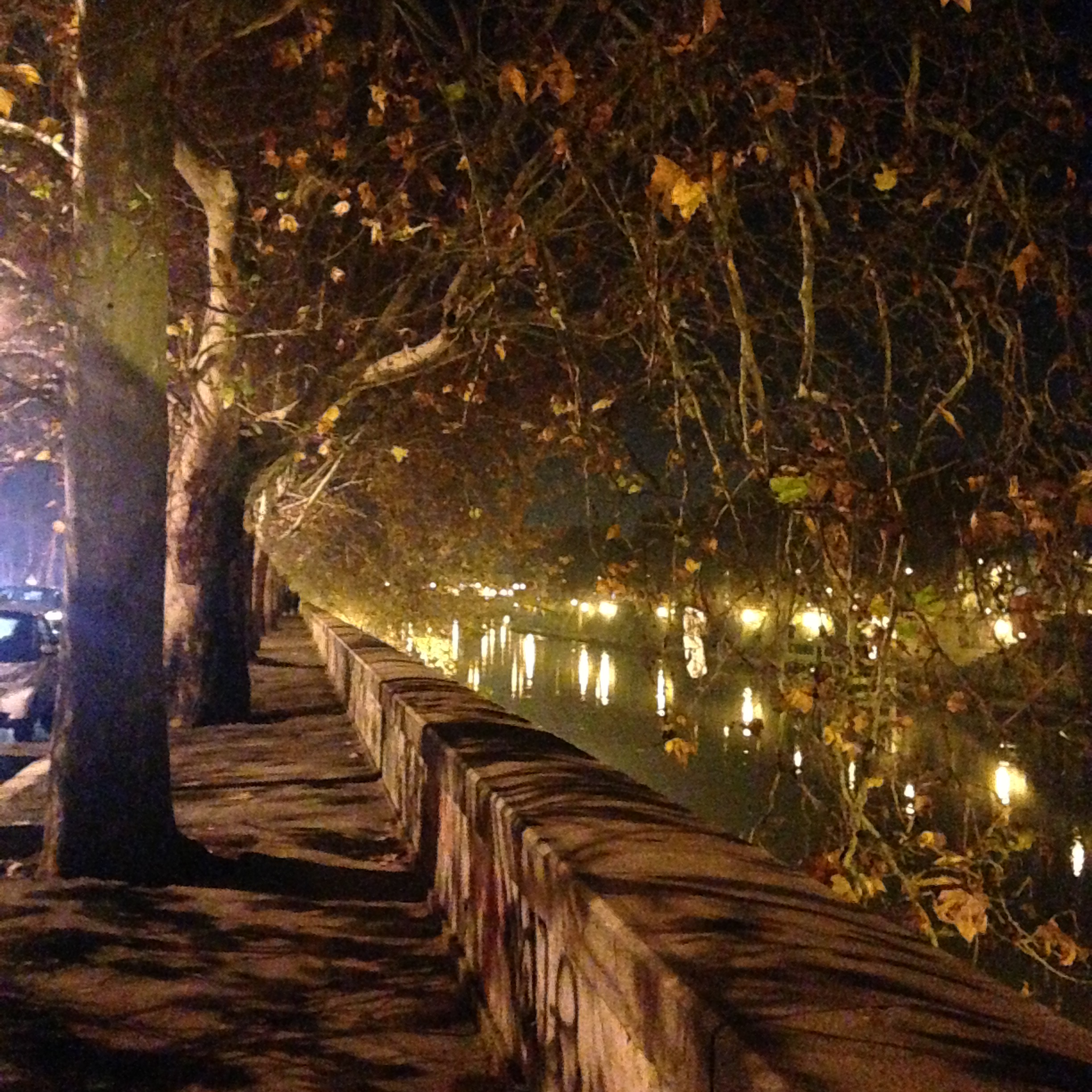 The Tiber River is so charming and romantic at night, even with that mysterious green tint…