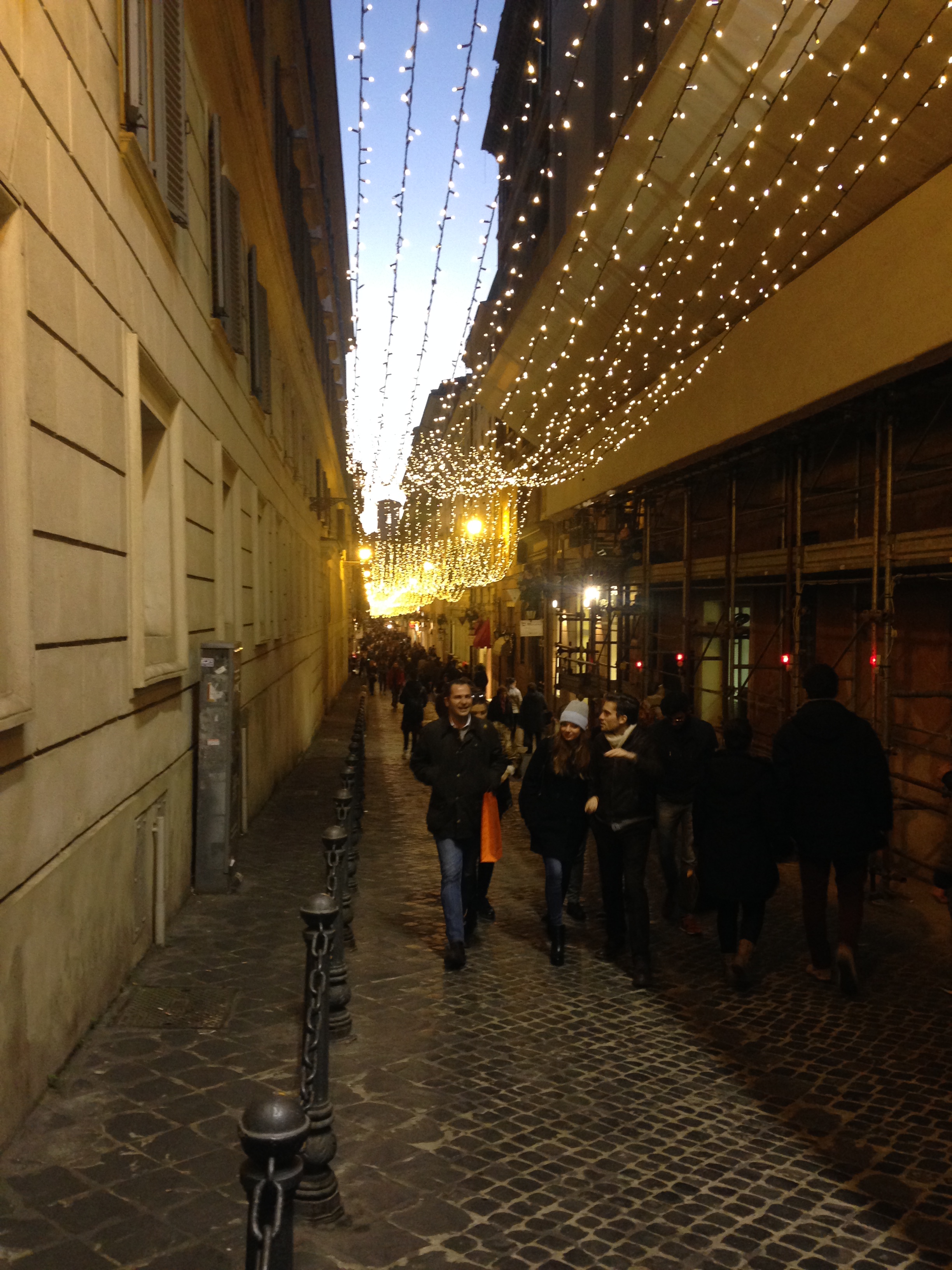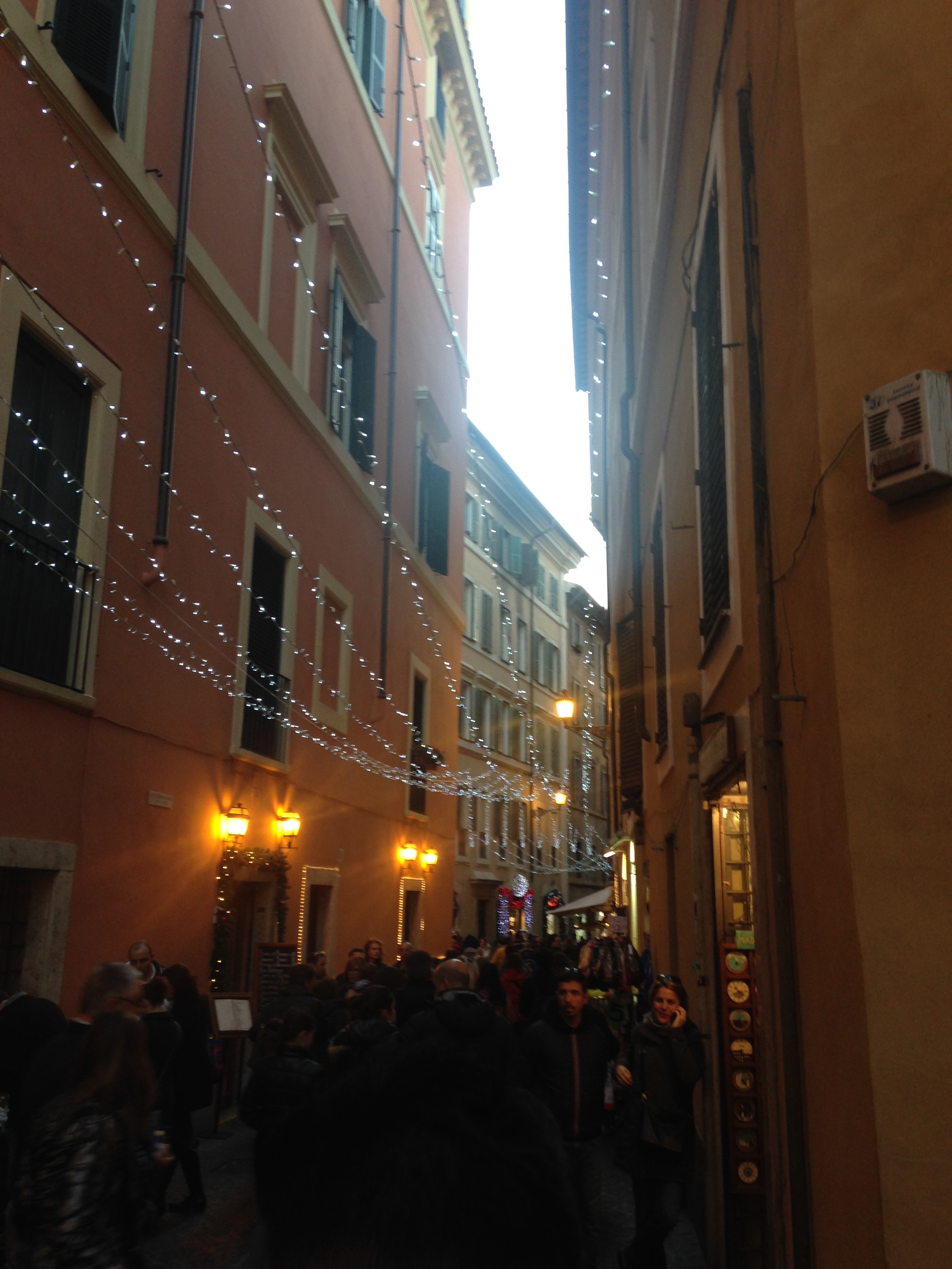 More lights and alleyways!!!! We bought a “Roma” clock from that little store on the right.