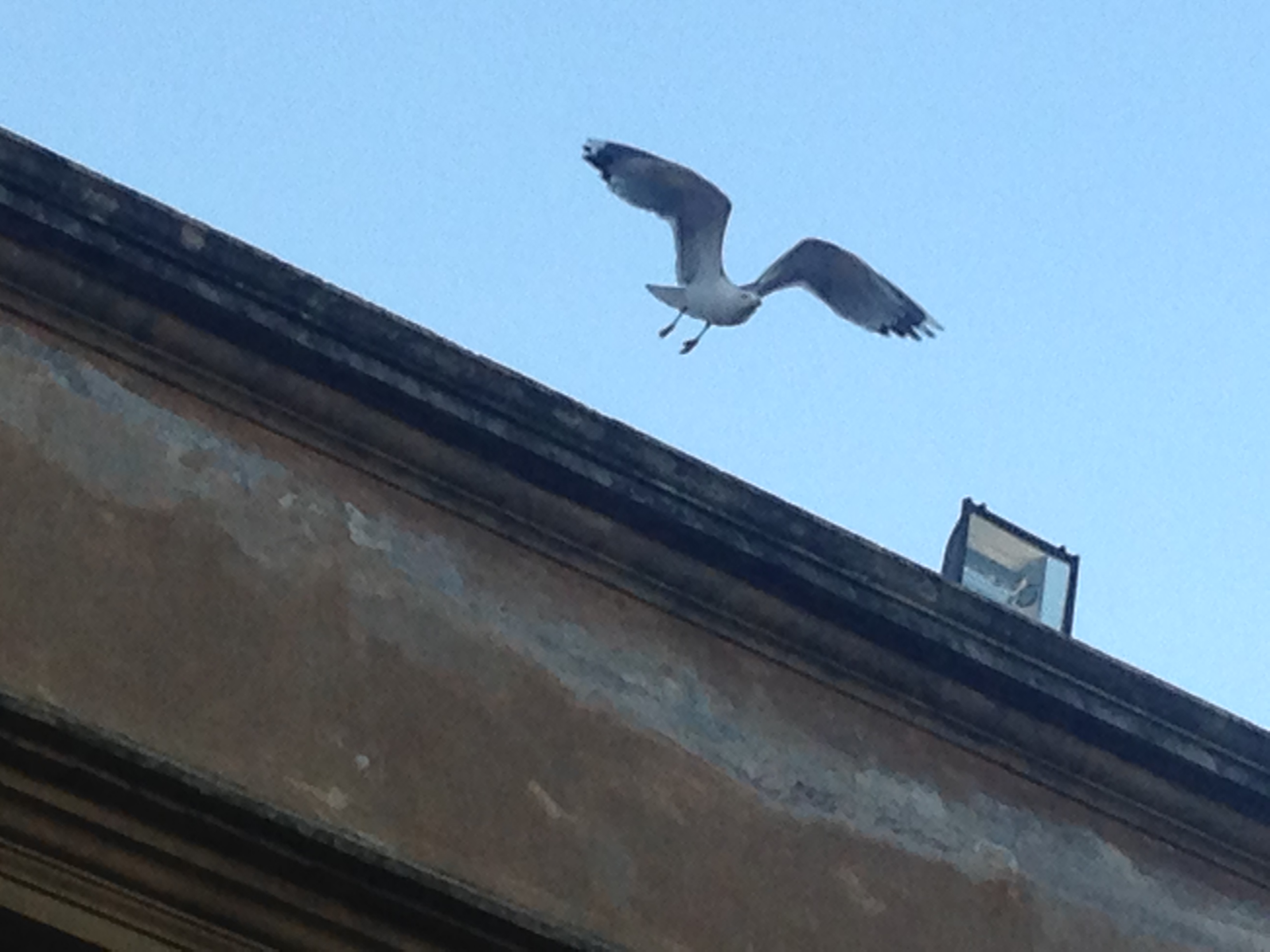 Then, while everyone else was fixated on an informational stop about the Sistine Chapel ceiling and the history and restoration of Michelangelo’s work (You can’t take pictures or video while inside. I LOVED that. It’s such a beautiful moment that you can only store in your memory. It’s so refreshing to be in a room where everyone is just taking it in…in silence.), I was zooming in on this seagull (Ya know, something I never do), and by some miracle, captured it taking flight.