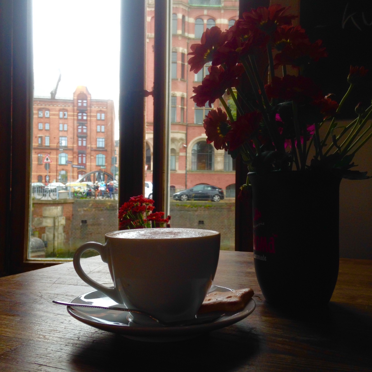I snatched up this tangible reminder along with a few gorgeous postcards and nestled into the perfect people-watching-from-the-window seat. My spi-dar (Ahem, spider radar!) alerted me to a few friends in the window. (Spiders. They’re all UP in the Hamburg windows. Ancient webs eeeverywhere. As long as they stay on the other side like the CAGED BEASTS THEY SHOULD BE, I have no problem with them. In fact, I enjoy spotting them clever mathematicians.)