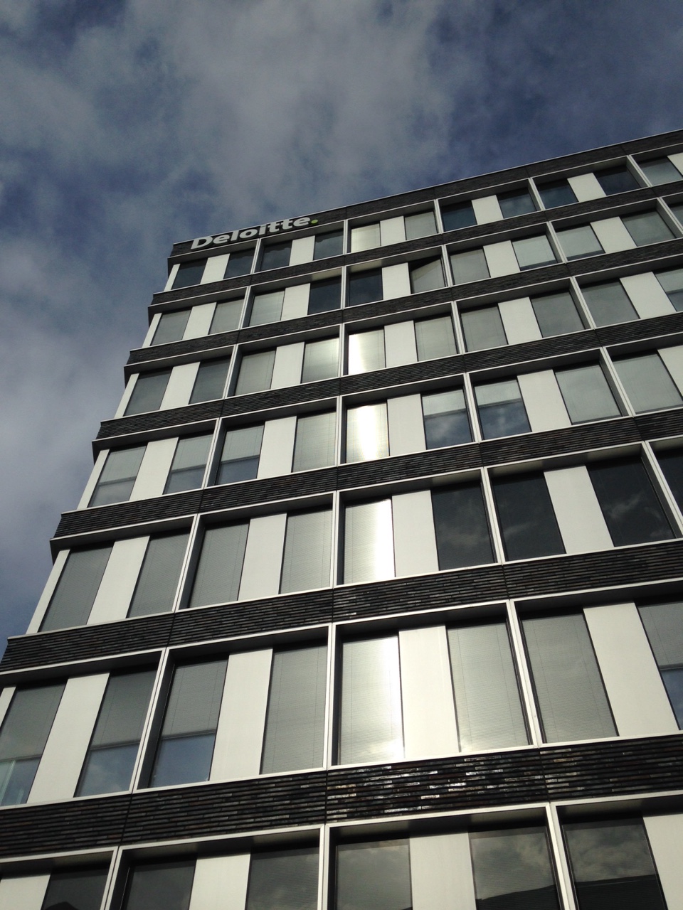 After free-hotel-breakfasting with D, he was off to conduct another Deloitte training for managers and partners (Ugh. I’m SO proud of that guy.), and I was off to explore with me, myself and I. But first…as any annoying, proud wife would do and any modest husband would cringe over, I must share a visual of Deloitte Hamburg: