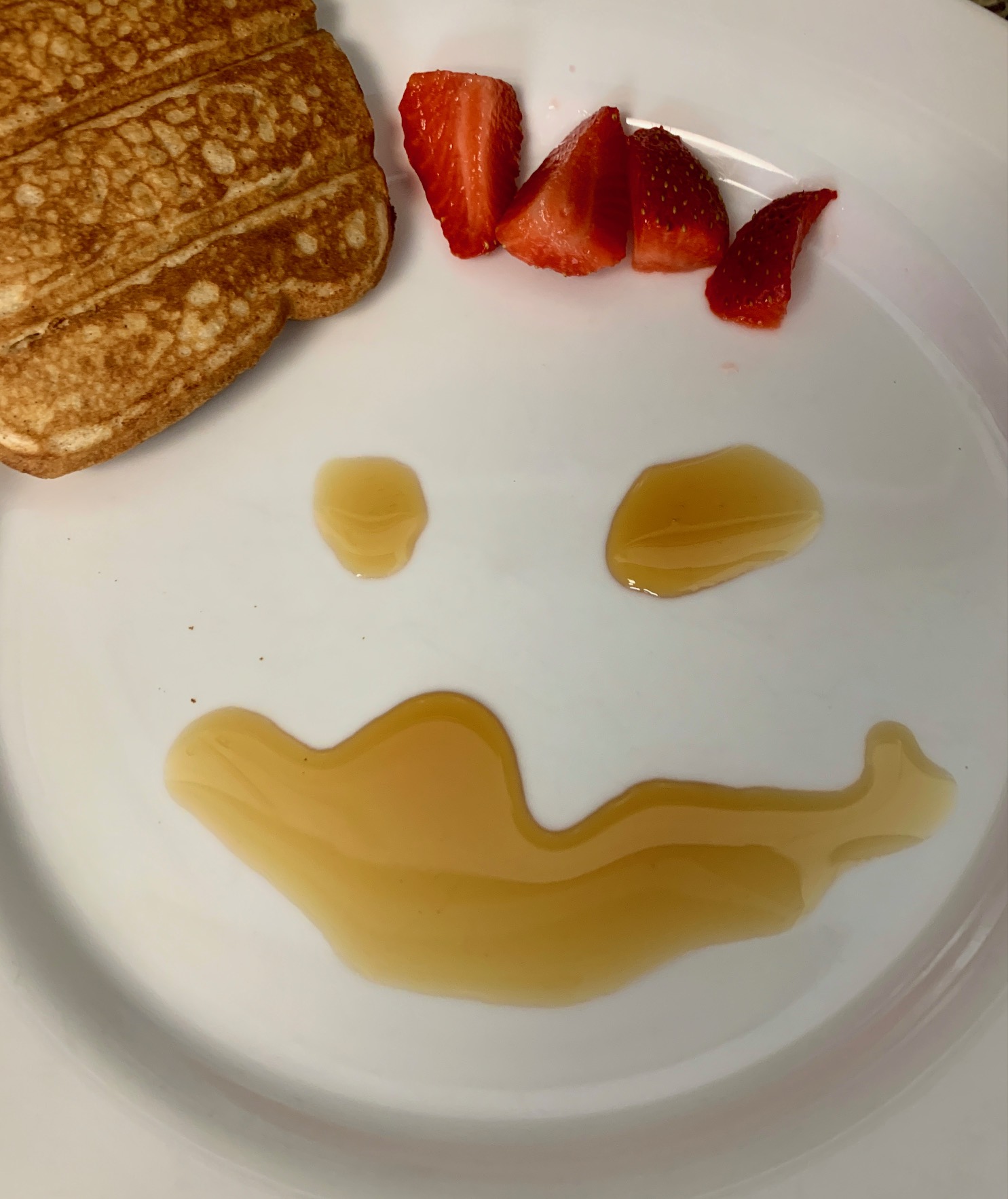 Even just making a smiley face on their breakfast plate could make a big difference. But, um, maybe don’t use syrup like I did. (LOL!) Honey. Use honey.