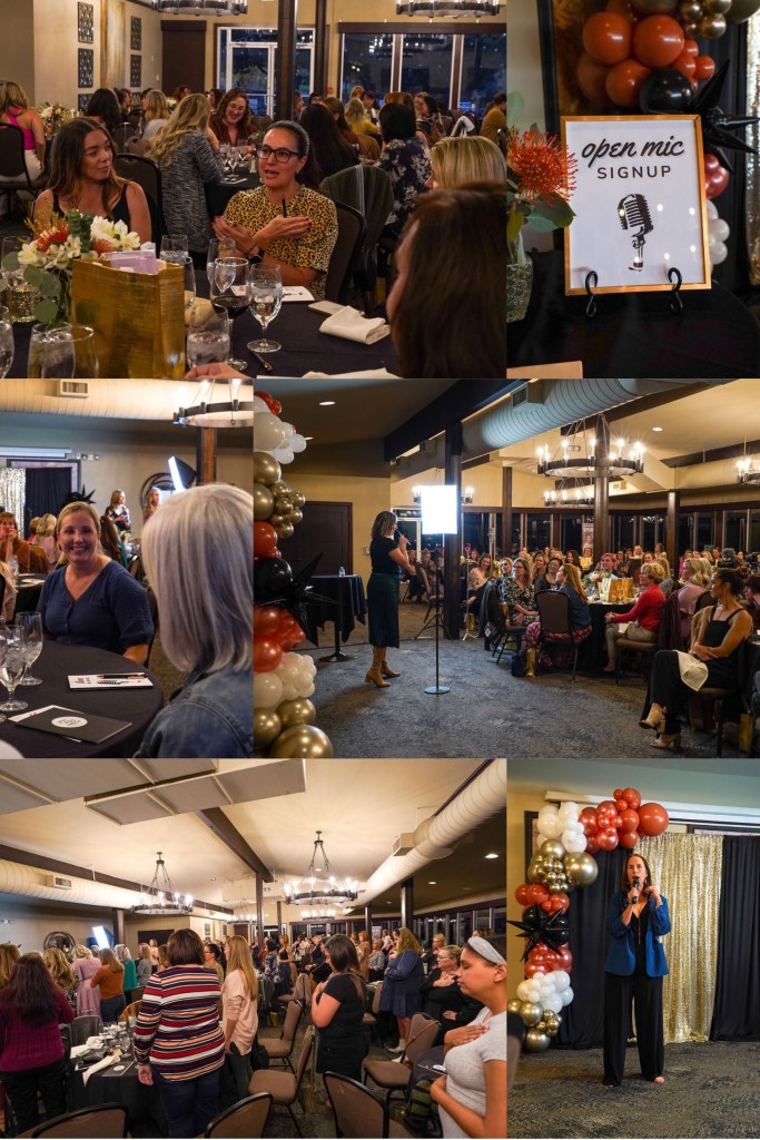Moms on the Mic is an annual dinner party for 100 women with speakers, comedy, open mic, and SO much more.